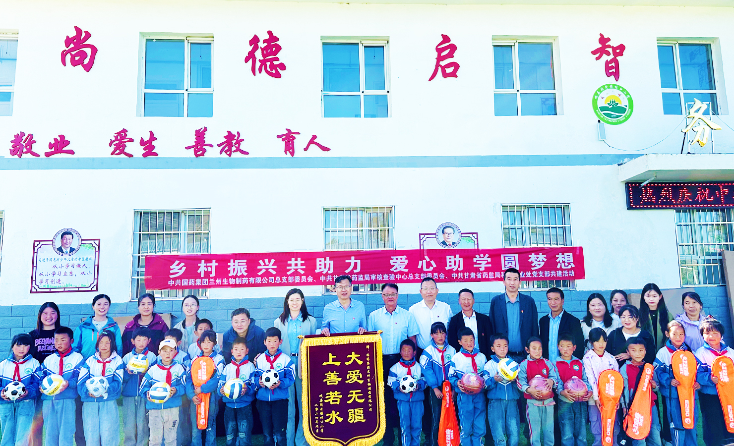 秋風(fēng)送爽,愛心滿溢。9月24日,蘭州生物制藥黨總支與甘肅省藥監(jiān)局審核查驗中心黨總支、甘肅省藥監(jiān)局科技產(chǎn)業(yè)處黨支部、定西白銀地區(qū)漿站聯(lián)合黨支部共同開展愛心助學(xué)捐贈暨支部共建活動,向定西市岷縣閭井鎮(zhèn)林口村小學(xué)捐贈書柜、課桌、籃球等辦公用具和體育用品,物資折合共計4.5萬元。本次活動,林口村委會黨員領(lǐng)導(dǎo)干部、校領(lǐng)導(dǎo)、學(xué)生共百余人現(xiàn)場參加。