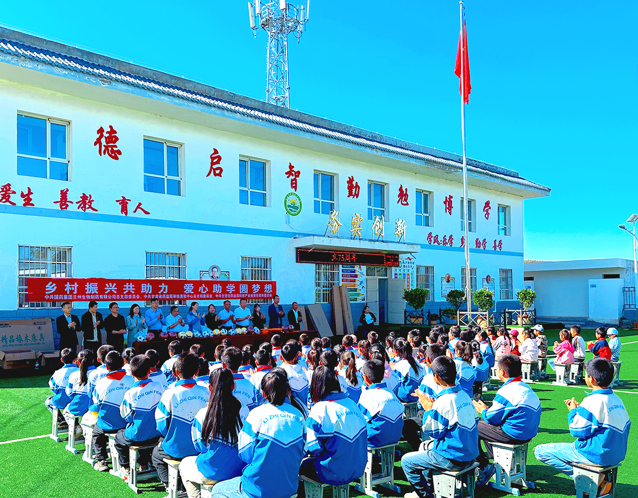 秋風(fēng)送爽,愛心滿溢。9月24日,蘭州生物制藥黨總支與甘肅省藥監(jiān)局審核查驗中心黨總支、甘肅省藥監(jiān)局科技產(chǎn)業(yè)處黨支部、定西白銀地區(qū)漿站聯(lián)合黨支部共同開展愛心助學(xué)捐贈暨支部共建活動,向定西市岷縣閭井鎮(zhèn)林口村小學(xué)捐贈書柜、課桌、籃球等辦公用具和體育用品,物資折合共計4.5萬元。本次活動,林口村委會黨員領(lǐng)導(dǎo)干部、校領(lǐng)導(dǎo)、學(xué)生共百余人現(xiàn)場參加。